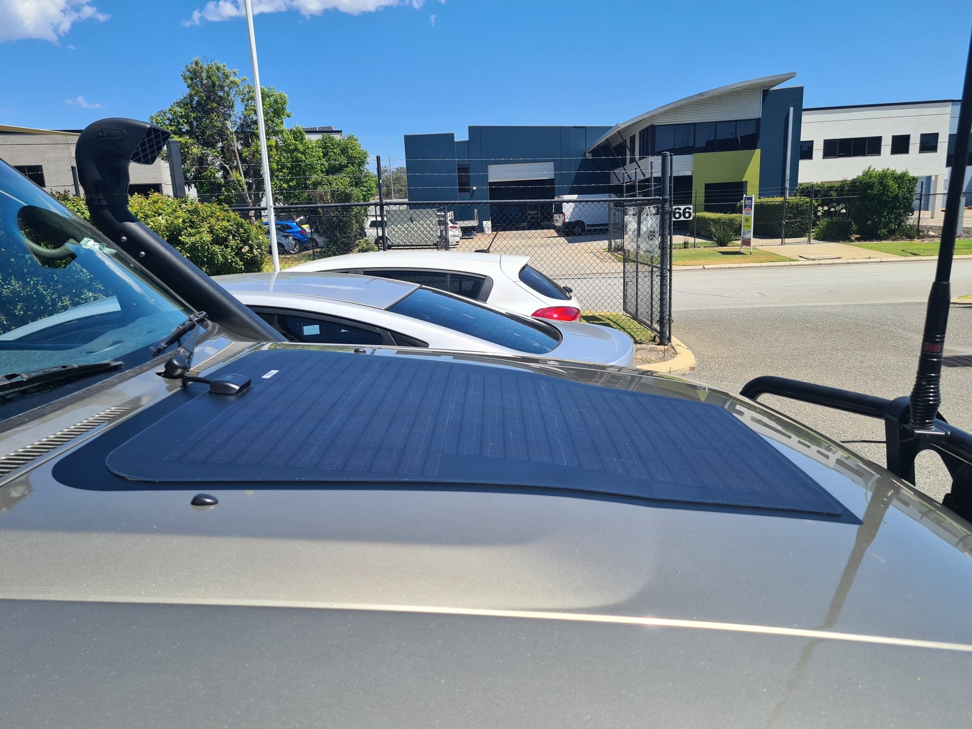 - 100 Watts of energy on the bonnet of your vehicle from a solar panel that is only 3mm thick, meaning vehicle aerodynamics are not affected and the weight of the system is negligible.