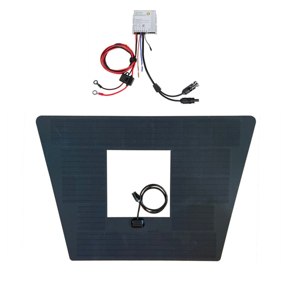 - Optional Plug-and-Play MPPT solar charge controller. This waterproof unit mounts in the engine bay and is highly resistant to heat and vibration. IT automatically controls how much electricity reaches the battery and prevents over charging. The charge controller has been pre-wired with fuses, terminals, and connectors to take out all of the guesswork in the setting up of the system.